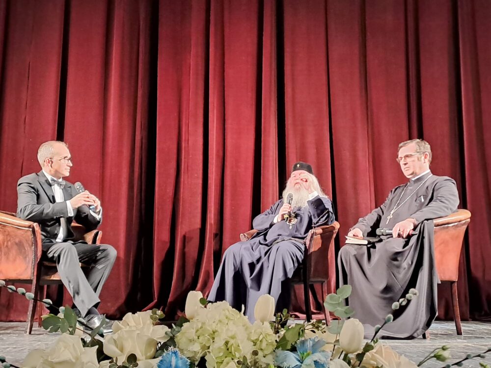 Conferința prezentată de cei doi invitați ai d-lui George Grigoriu a fost una deosebit de captivantă și de interesantă. Cei doi conferențiari s-au completat reciproc, în sensul în care, dacă Părintele Mitropolit Ioan a prezentat tema procesului Mântuitorului Hristos dintr-o perspectivă duhovnicească, adresându-se sufletului publicului prezent în sală, inserând în discursul Înaltpreasfinției Sale și detalii de natură istorică și exegetică, Părintele Decan Cristinel Ioja s-a adresat rațiunii publicului ascultător, printr-un discurs teologic foarte bine articulat, cu incursiuni de mistagogie patristică de o mare finețe teologică.